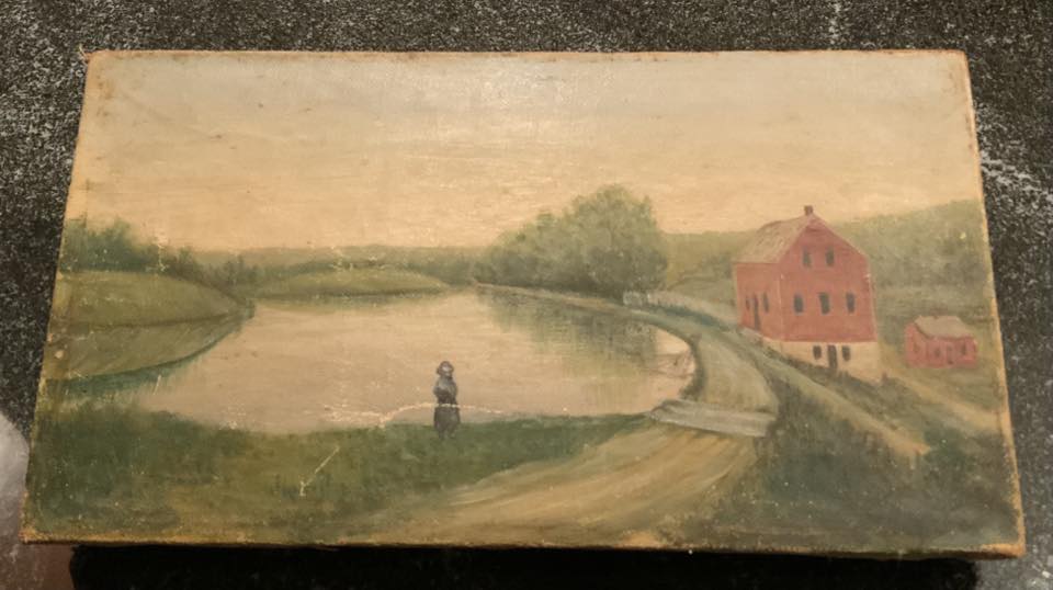 I have this much more simple version of the same scene. There’s no date on it but was painted by what I’m assuming is a relative of Charlie Fay who was my step grandfather. He married my Grandmother Mabel Miller.