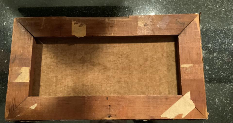 Back of the Fay painting marked Fay at top right corner.