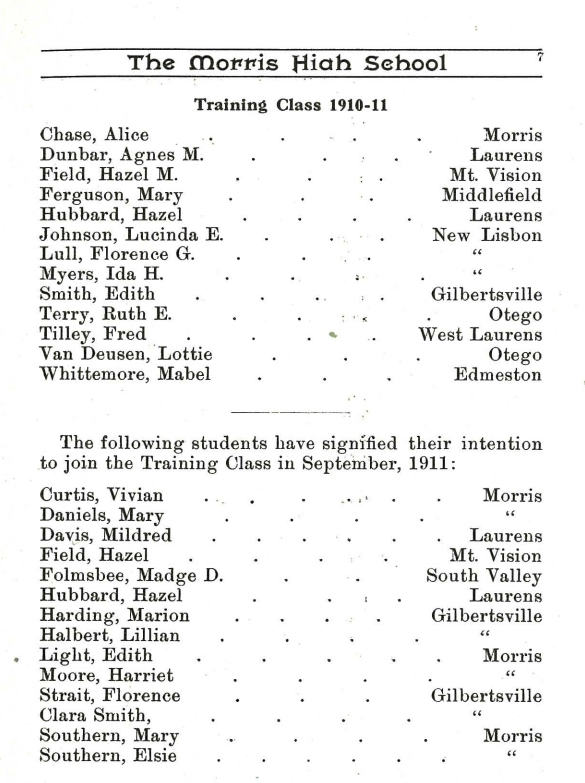 In the 1910-1911 Catalog of the Morris High School student names are listed.